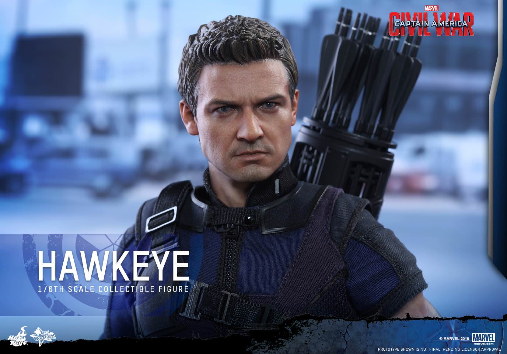 – Newly painted head sculpt with authentic and detailed likeness of Jeremy Renner as Hawkeye in Captain America: Civil War