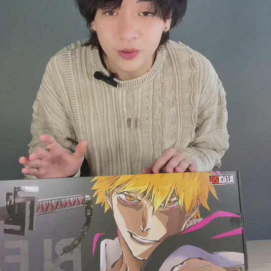 The Zanpakuto Tensaku Zangetsu used by the main character Ichigo Kurosaki is now available in approximately 1/1 size! Equipped with a voice input gimmick, a vibration gimmick that reproduces the increase in spiritual pressure is activated in response to voice! Experience the ultimate Tenchain Zangetsu that traces the history of the battle of Ichigo Kurosaki with your own hands!