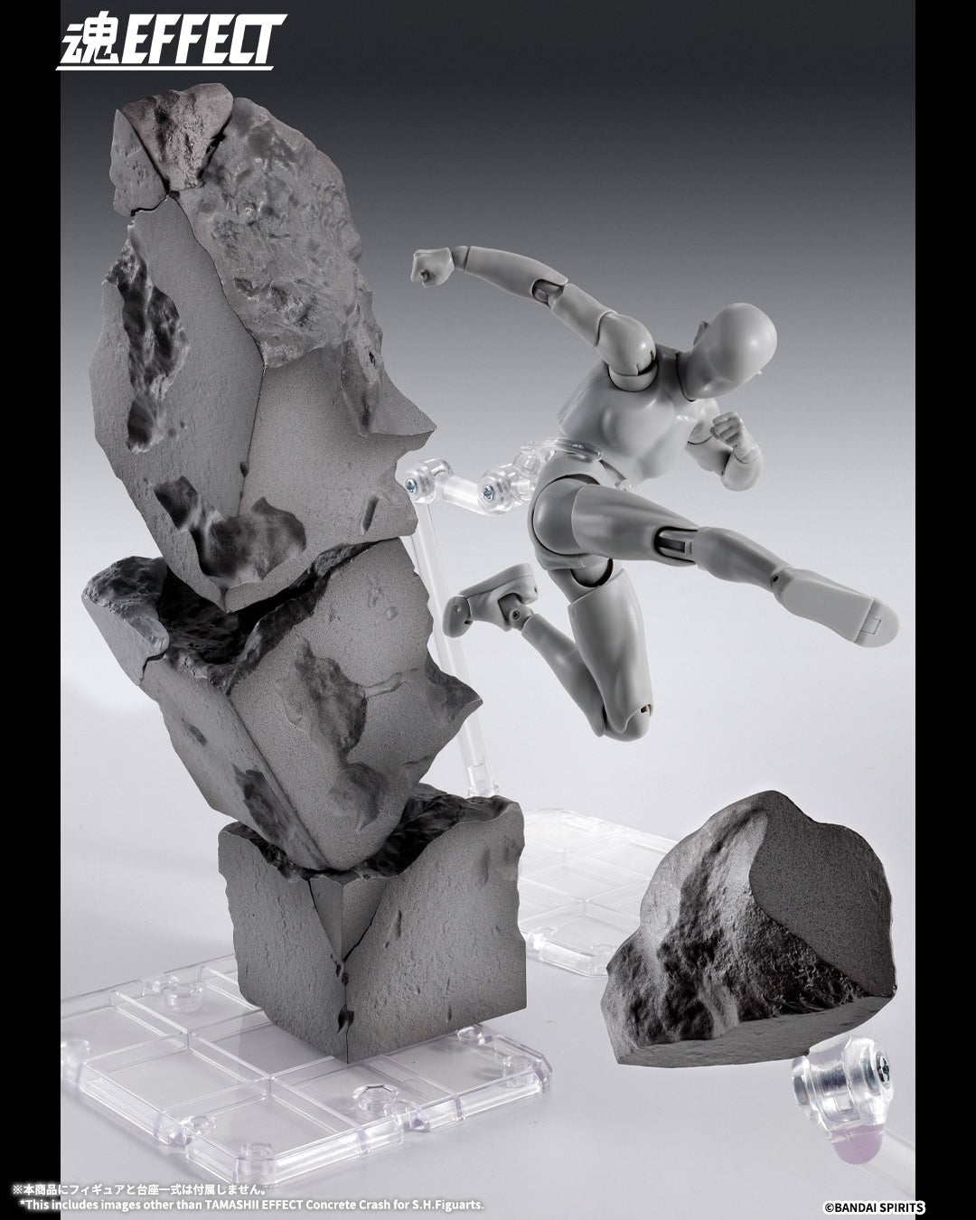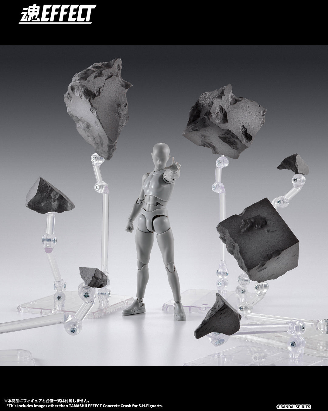 TAMASHII EFFECT Concrete Crash comes to the popular TAMASHII EFFECT series, inspired by the moment concrete blocks break into pieces! It can displayed to recreate scenes where pieces are floating or flying through the air from either telekinesis or high-impact action with TAMASHII STAGE (sold separately)! *No figures or pedestal sets are included with this product.